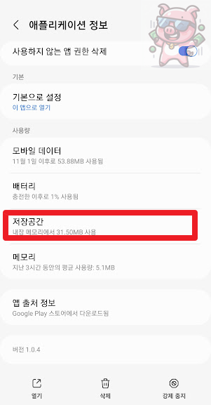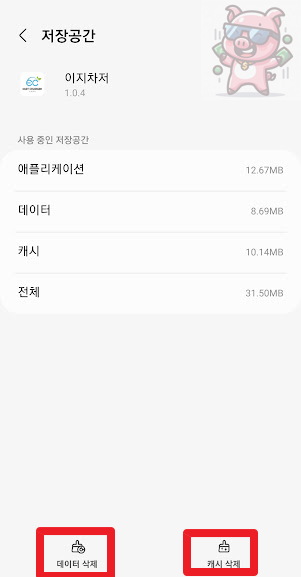 저장공간 ▶ 캐시삭제 ▶ 데이터 삭제를 순차 선택합니다.